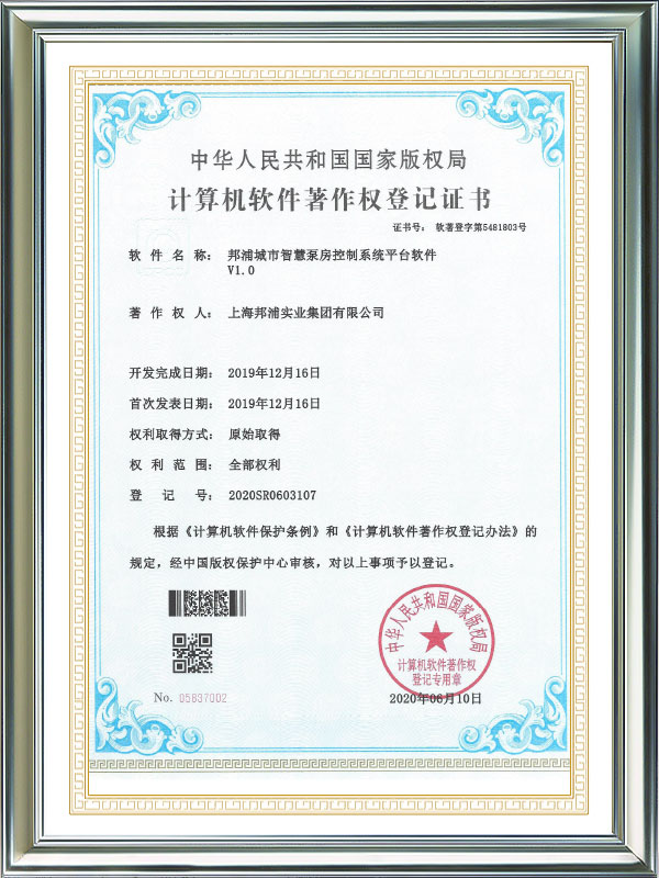 Datorprogramvara arbete registreringsbevis-Bangpu-city-intelligent pumprum kontrollsystem plattform programvara